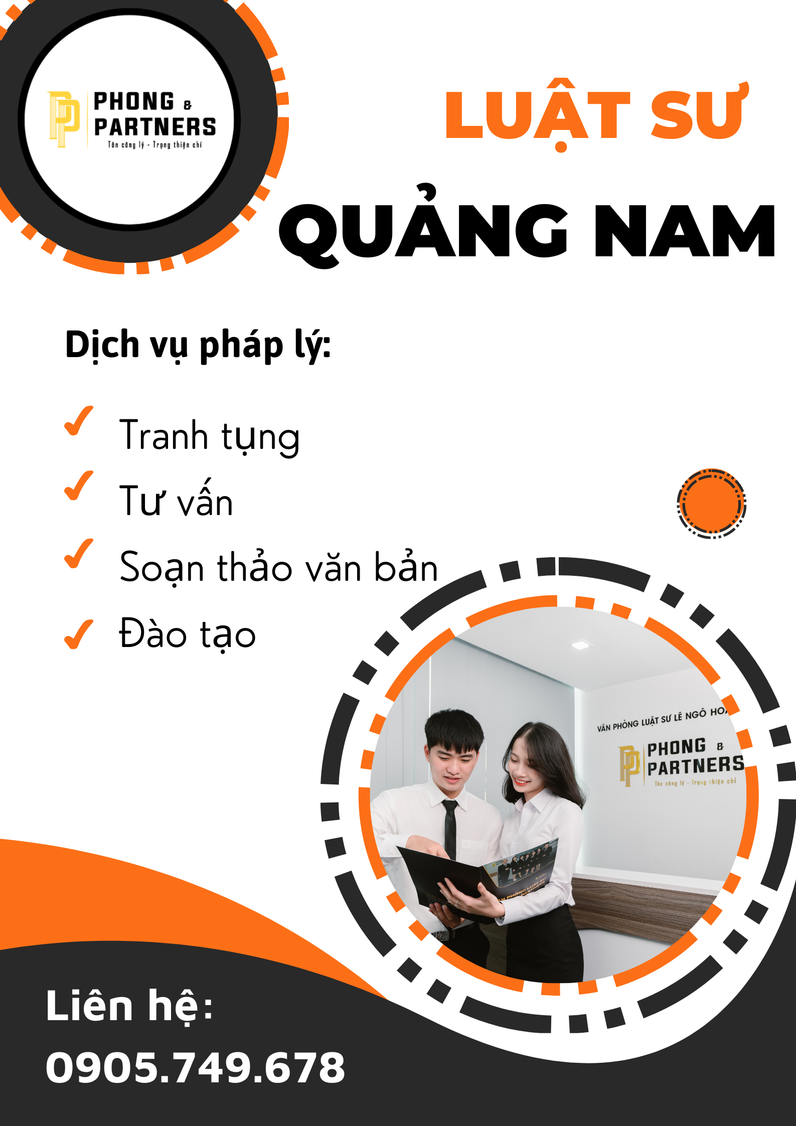 Đại diện: Ông Lê Minh Hoàng– Trưởng Văn phòng.Địa chỉ: 82 Mẹ Thứ, TT. Vĩnh Điện, Điện Bàn, Quảng NamĐiện thoại: 090 586 87 09Email: ductutpl@gmail.comWeb: https://www.facebook.com/thuaphatlaiquangnam