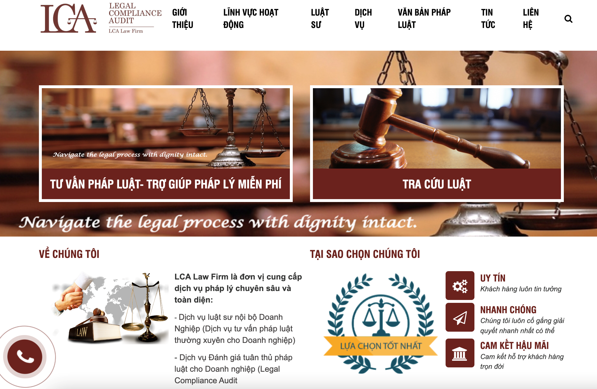 LCA là một trong những Công ty Luật uy tín tại Việt Nam, luôn được Khách hàng trong và ngoài nước tín nhiệm và đánh giá cao. LCA có các Luật sư và các chuyên viên tư vấn pháp lý giỏi, có trình độ chuyên môn cao, uy tín, chuyên nghiệp và có kinh nghiệm trong nhiều lĩnh vực LCA cung cấp dịch vụ Luật sư, tư vấn pháp luật, dịch vụ pháp lý trong các lĩnh vực: đầu tư, doanh nghiệp, nhà ở, đất đai, hợp đồng, sở hữu trí tuệ, lao động, thuế, kế toán, hình sư, giải quyết tranh chấp. Đến với LCA, bạn sẽ không còn phải băn khoăn, lo lắng về những quy định cũng như quyền lợi, nghĩa vụ của mình trong các vấn đề pháp lý gặp phải. LCA Law Firm luôn sẵn sàng phục vụ để mang đến chất lượng dịch vụ tốt nhất, “Tất cả vì lợi ích của khách hàng”.