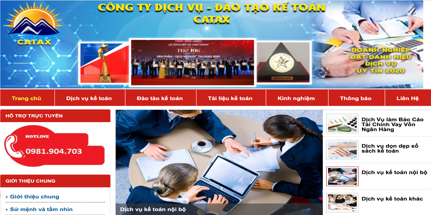 Công ty dịch vụ kế toán Catax hoạt động trong 2 lĩnh vực chính là dịch vụ kế toán và đào tạo kế toán, là một trong những doanh nghiệp luôn đạt được danh hiệu ” Doanh nghiệp dịch vụ uy tín” của Bộ Công Thương trong nhiều năm qua. Với phương châm “3T”: ” Tâm – Tín – Tài”, Catax coi trọng giá trị dịch vụ ở cái tâm, sự uy tín và năng lực cũng như kinh nghiệm qua nhiều năm của dàn cán bộ nhân viên công ty đã được nhiều đối tác đánh giá cao.